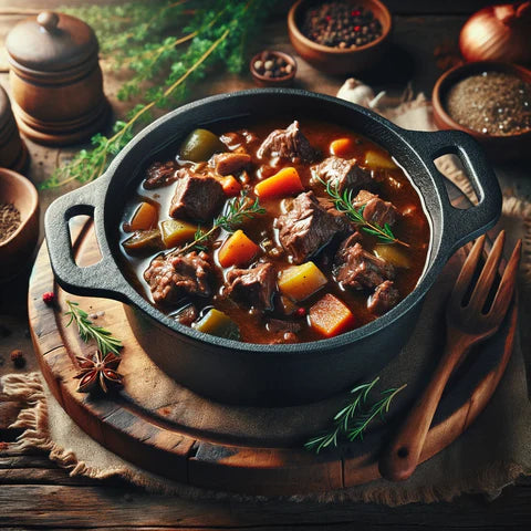 Reh- oder Hirschgulasch im Gusseisernen Topf