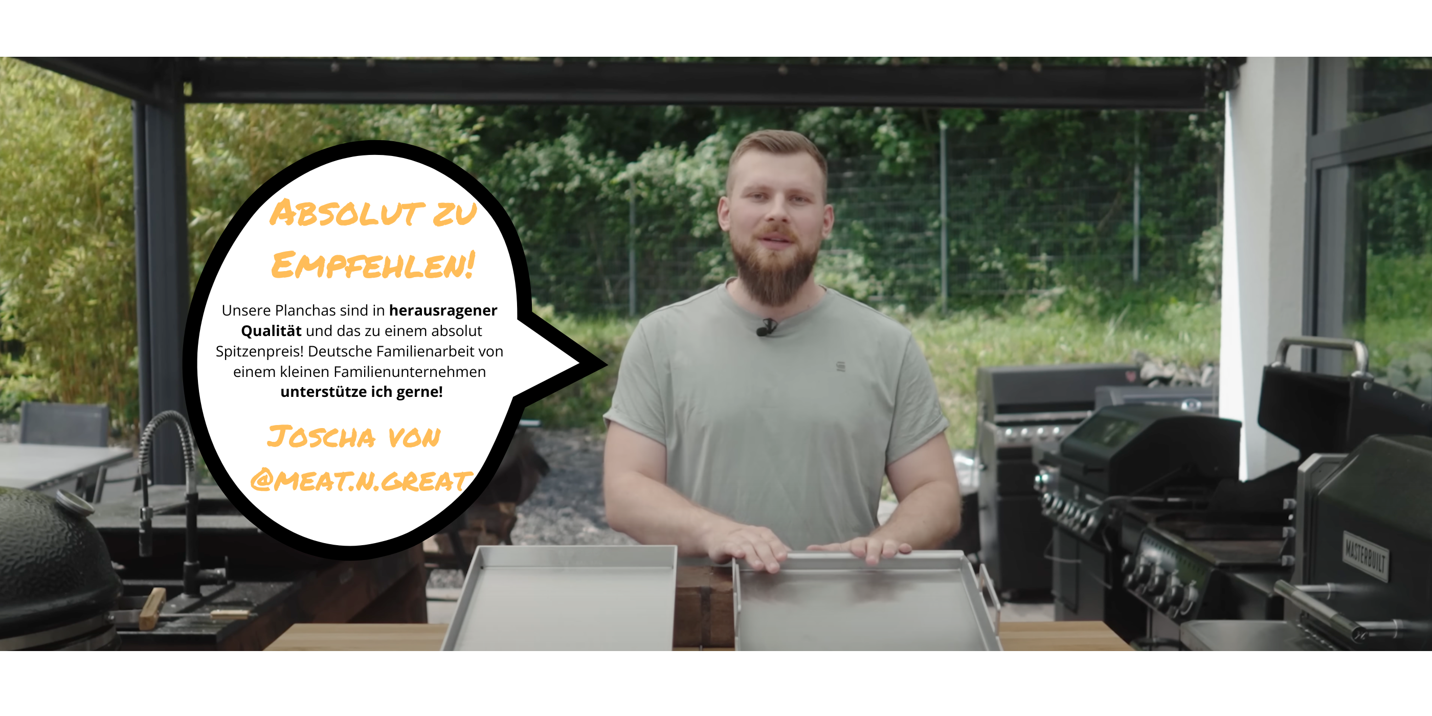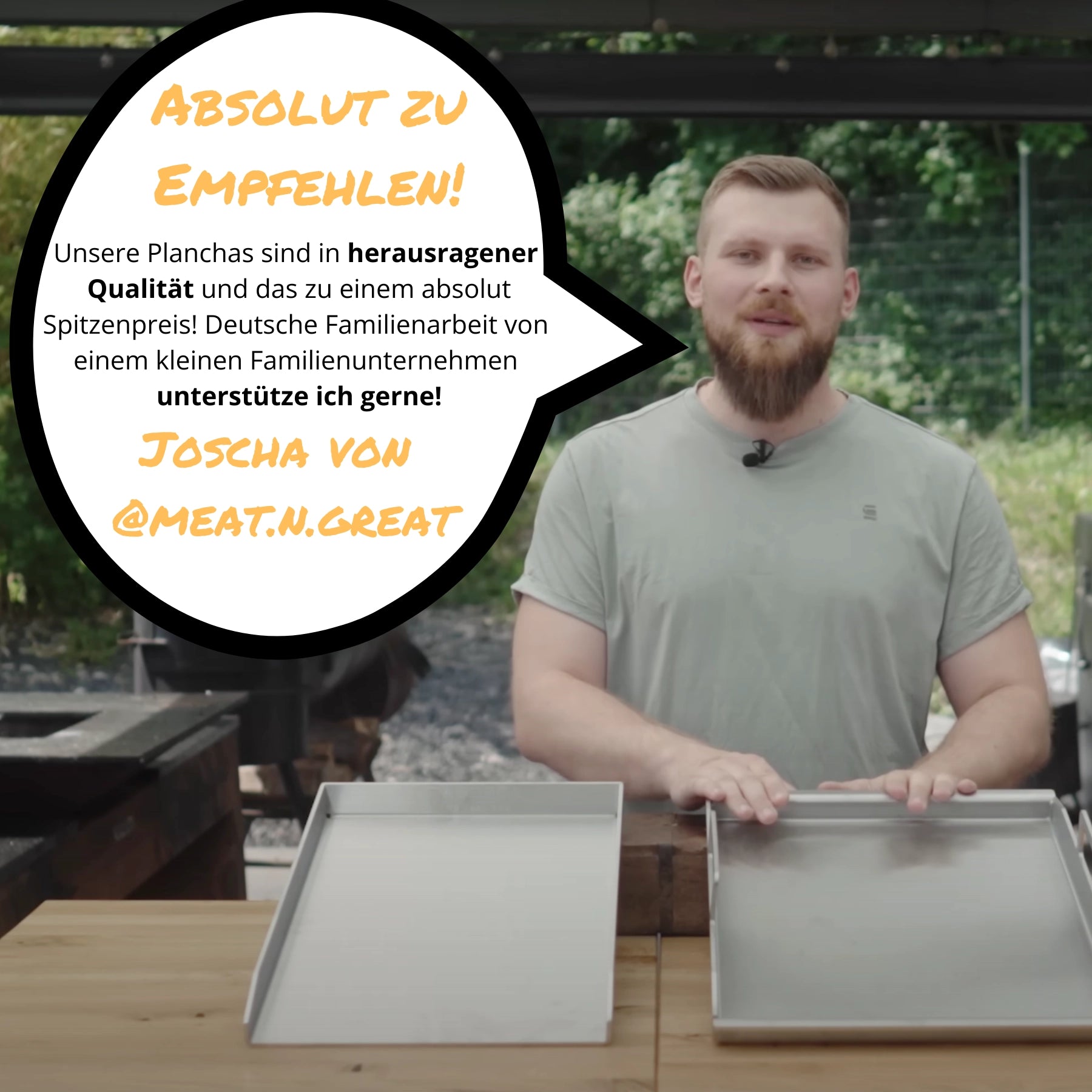 Unser Ziel ist es, – soweit wirtschaftlich und technisch möglich – unsere Produkte in Deutschland zu fertigen, um höchste Verarbeitungsstandards und nachhaltige Praktiken zu gewährleisten. Wo eine Herstellung in Deutschland nicht realisierbar ist, setzen wir stattdessen auf faire und transparente Lieferketten. So werden unsere Planchas, Einsatzpfannen, Flammschutzbleche und vieles mehr in Deutschland gefertigt.